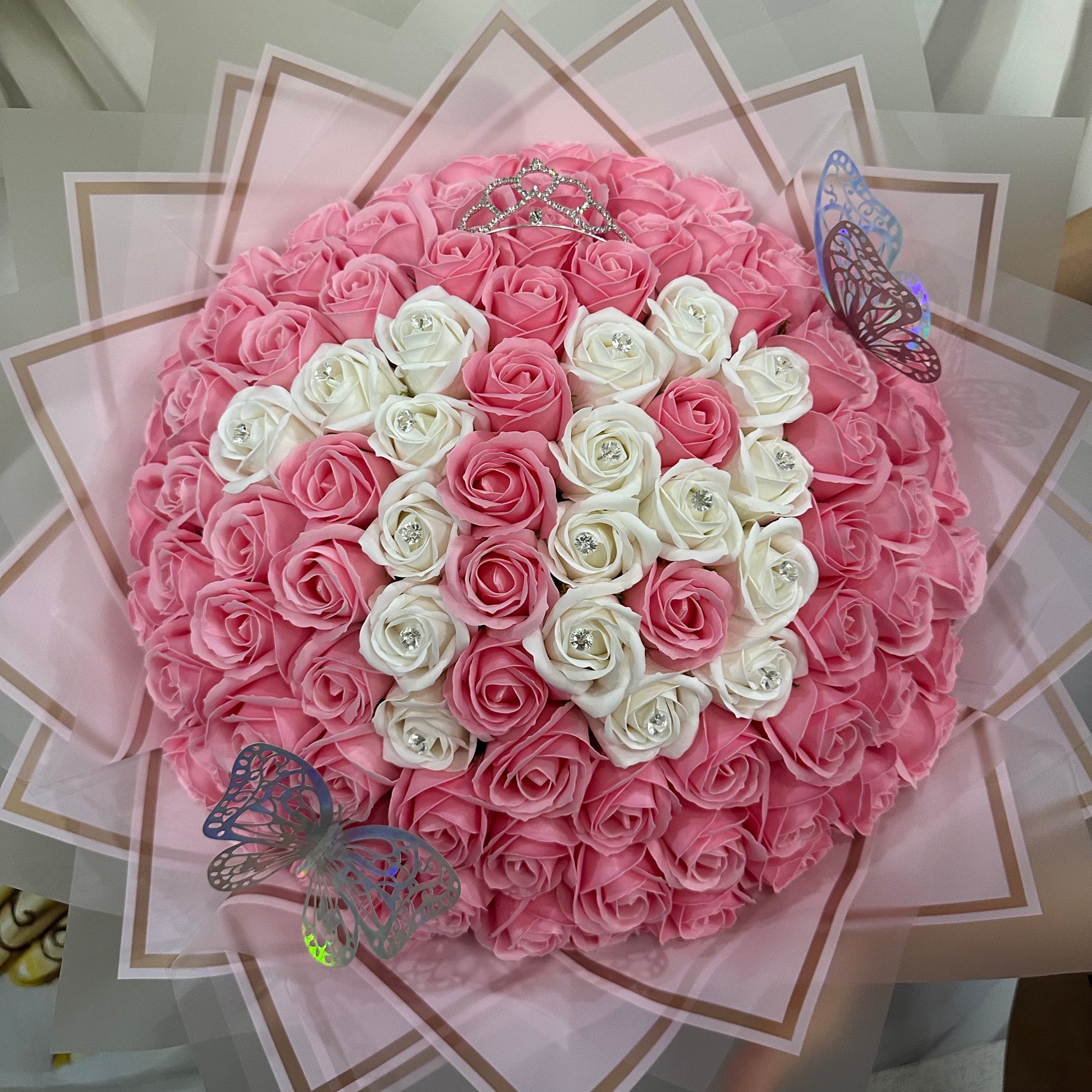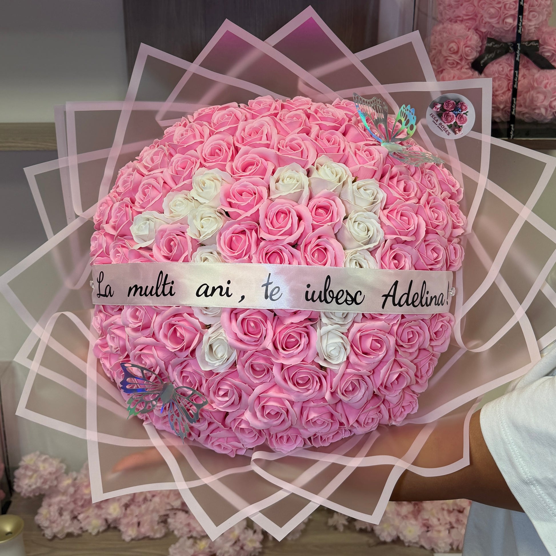 Buchetul contine 101 Trandafiri clasici de sapun.