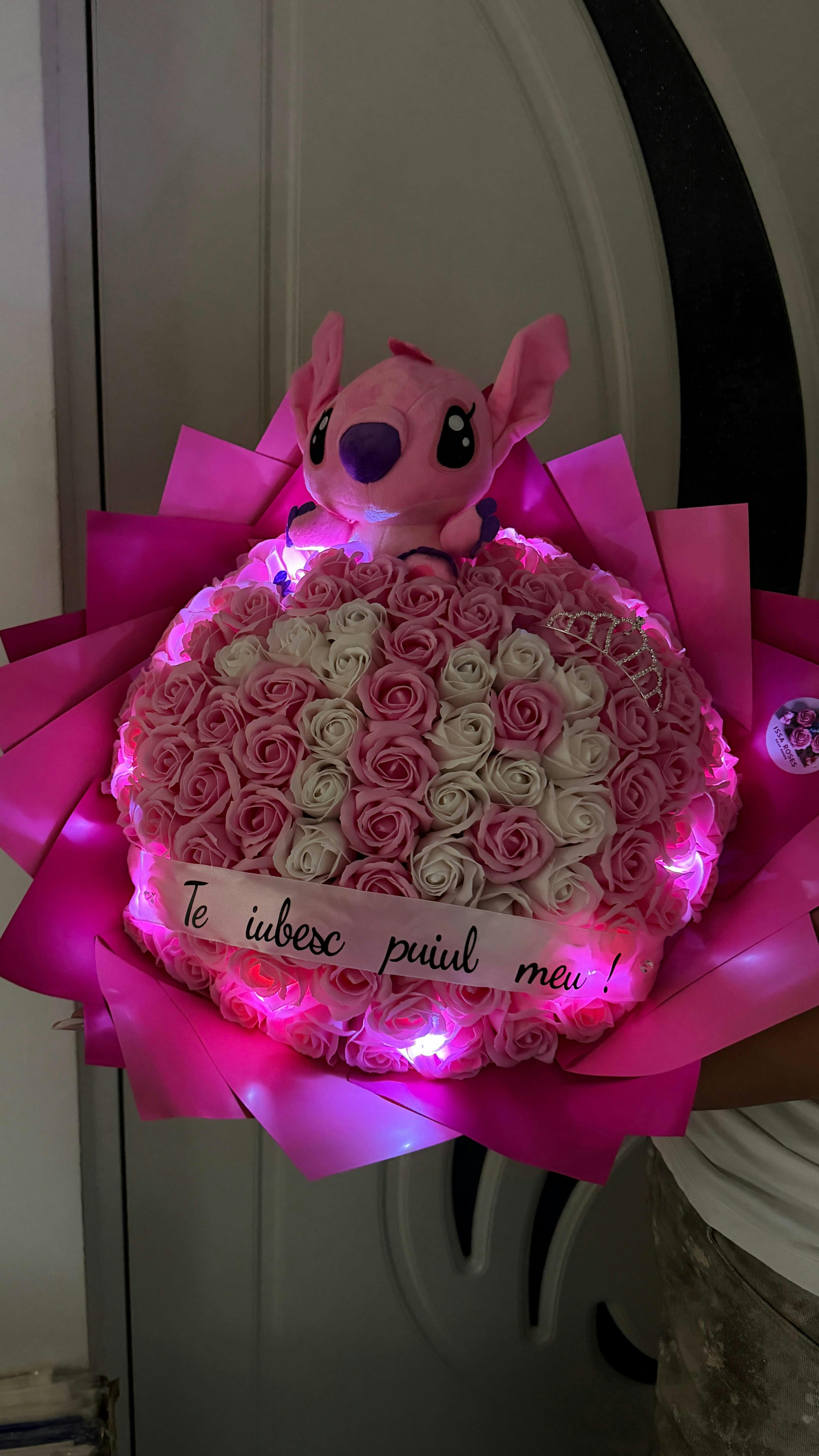 Buchet 101 Trandafiri Zi de nastere + Stitch Mediu