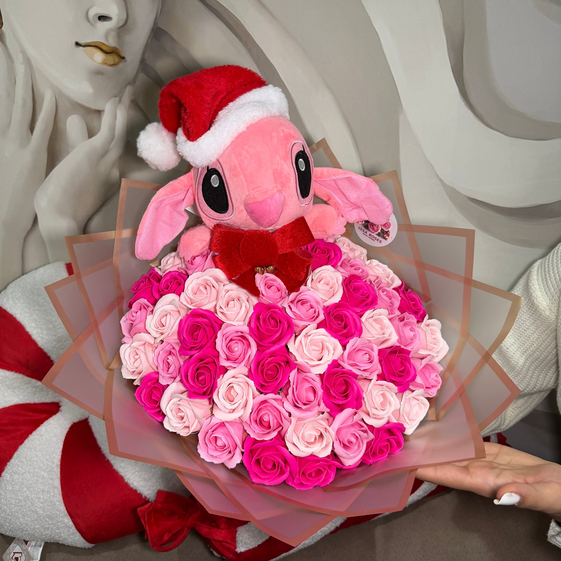 Buchetul contine 51 Trandafiri de sapun + Jucarie Stitch medie Craciun