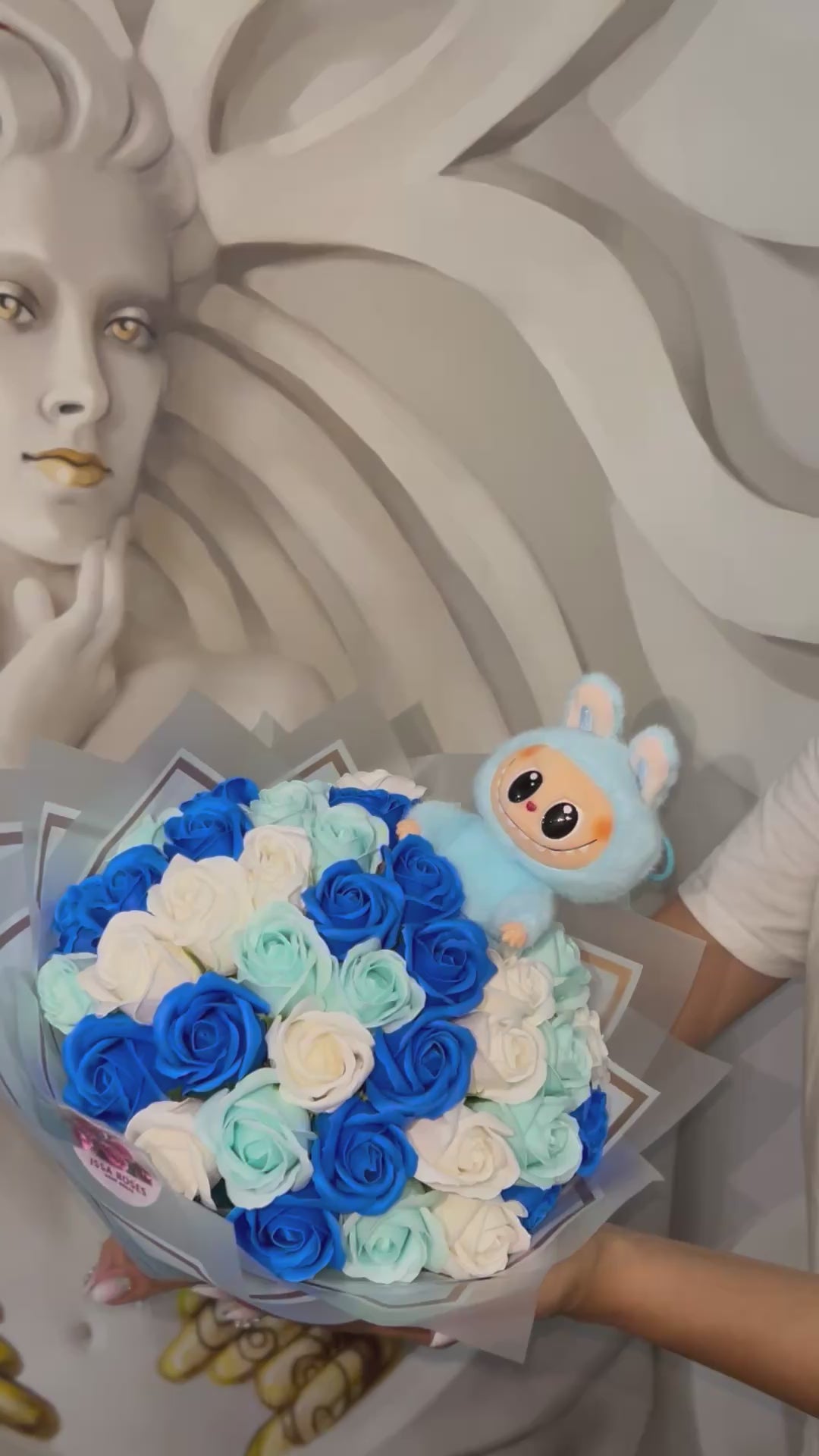 Buchetul contine 31 trandafiri sapun + jucarie Labubu replică 1:1.