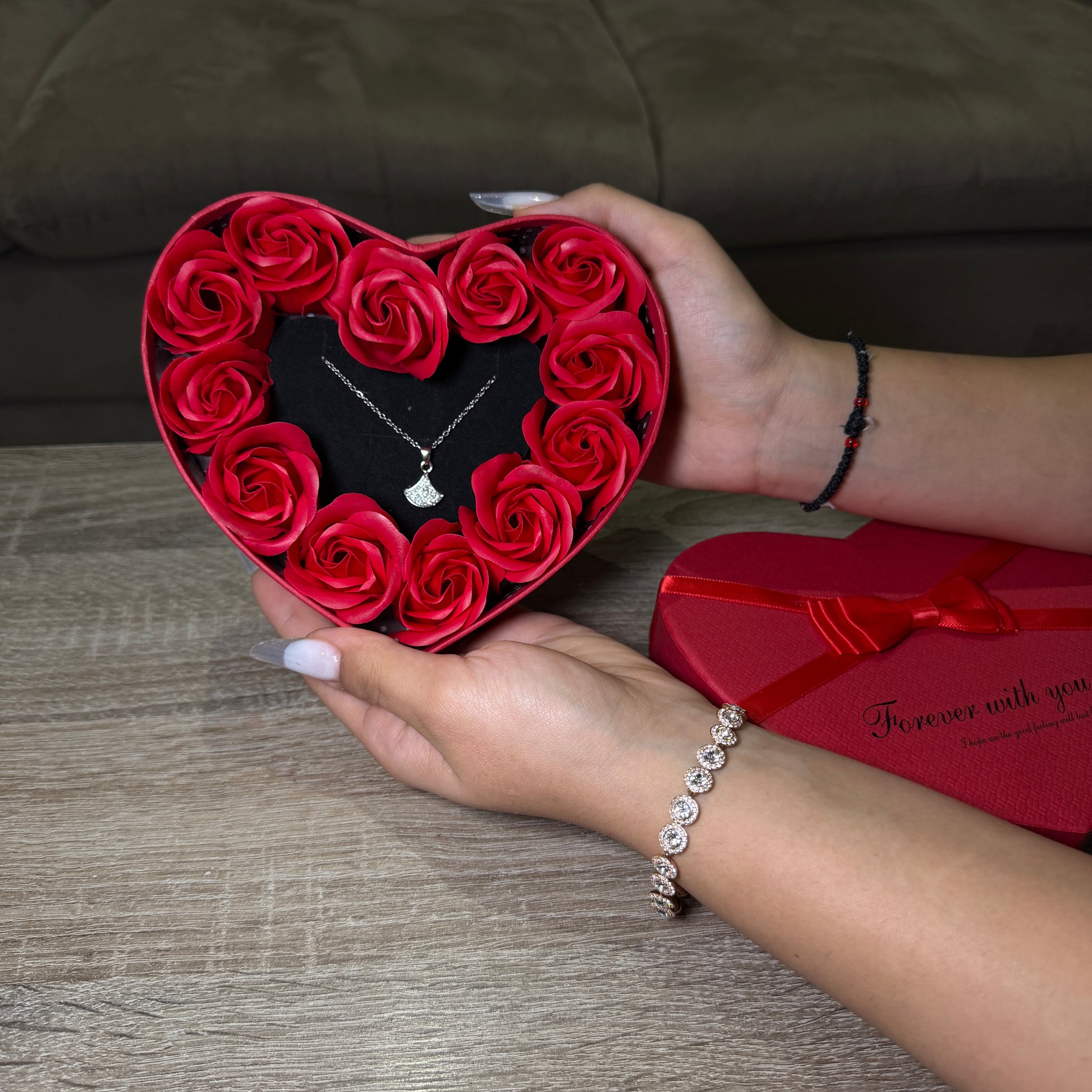 Cutie Inima Trandafiri + Lantisor Cadou